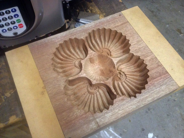 Another project that came to mind with the Holidays approaching was some sort of serving dish carved out of solid wood. After playing around with a few designs, we settled on a very decorative 2 sided shell bowl.