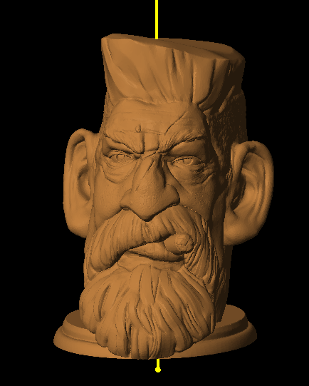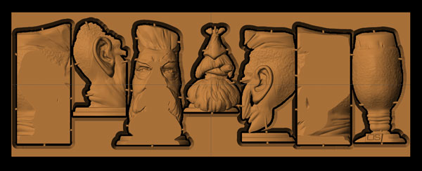 I decided to carve him into MDF for its uniformity and usability. I glued up two pieces of 3/4″ material to make a 1.5″ thick board and carved it out. One thing about doing deep carvings is they do take longer. This carve took 10 hours.