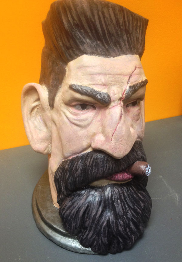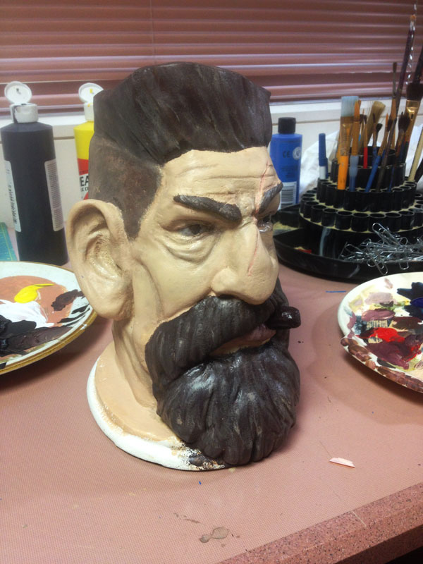 I used acrylic paints and started with an undercoat of skin tone, then I gave him dark hair and beard. From there I started adding in the details. After several hours and many mistakes, I was finally ready to call him done.