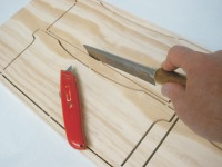 Using your mark as a guide and working very carefully, use a hand chisel or miniature router to remove enough material within the mark so the closed hinge will sit flush with the box edge.