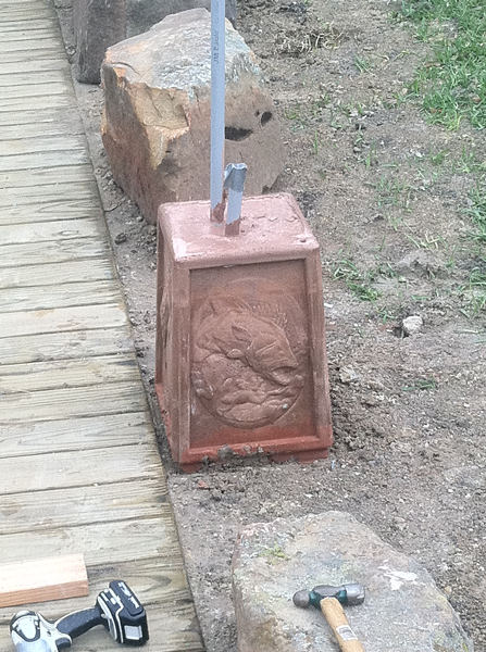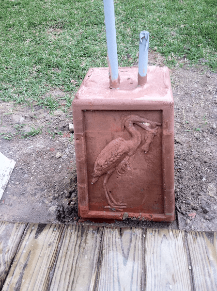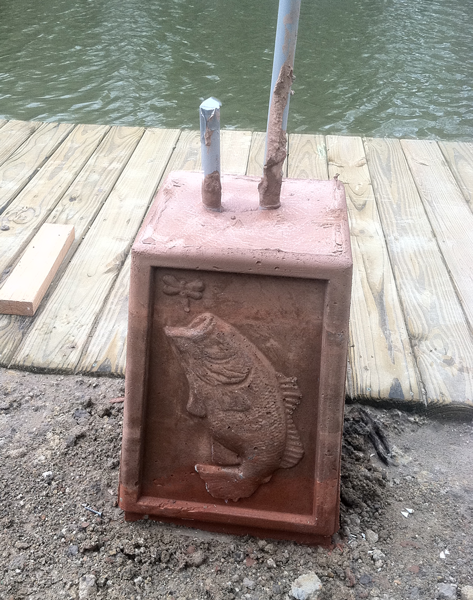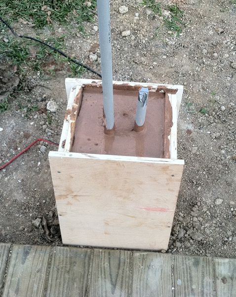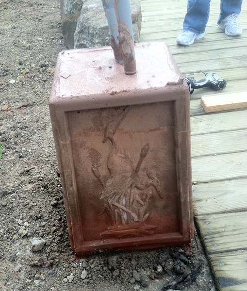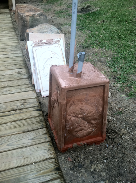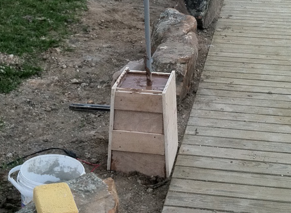 The conduit and wiring had already been positioned for the lamps, so we set the mold in place, mixed the concrete and poured.