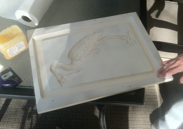 The next step was to prepare the molds so they would release from the concrete. First they were sprayed with a white shellac primer to seal the wood.