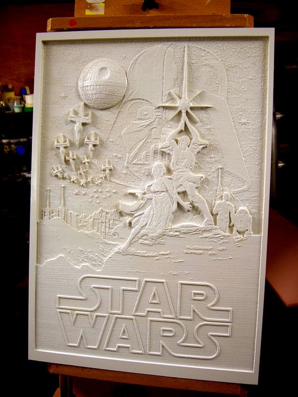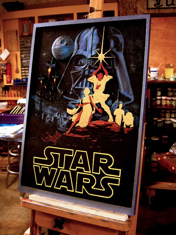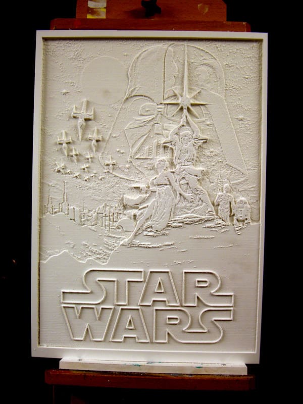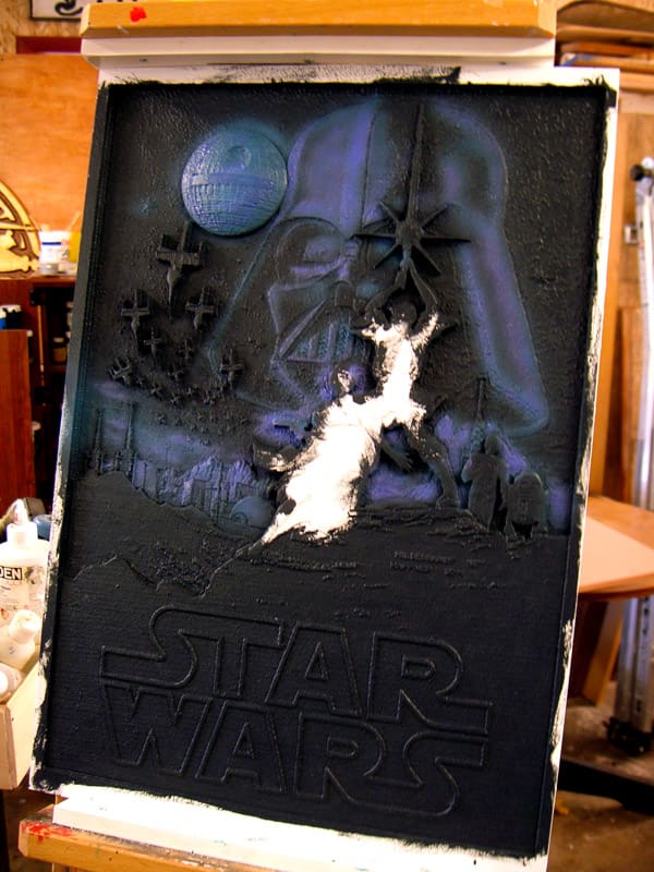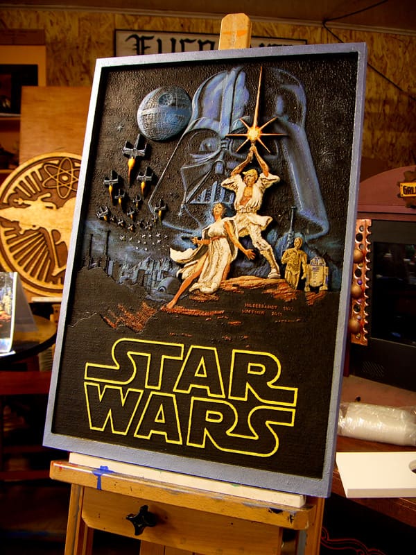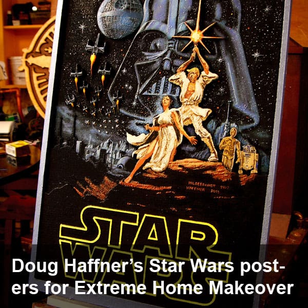 When CarveWright was contacted by ABC’s Extreme Makeover: Home Edition to help with a Star Wars room, we immediately thought of customer Doug Haffner of haffnersigns.com . When we called Doug and mentioned Star Wars room, he responded with “YES!” before we could even finish the question! We only asked if he could do one carved poster, but he did all three of the original movie posters as well as several other carved pieces for the kid’s Star Wars room. Great job Doug!