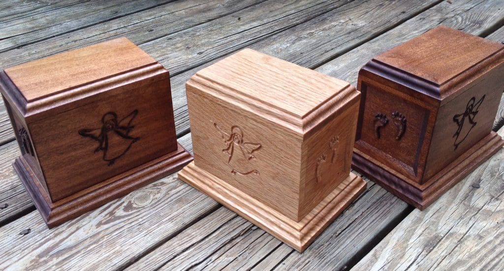 Initially, George thought he would just make signs and put names on boxes. In 2010, he began making urn boxes for Garden of Innocence, a charity organization that helps bury abandoned children.