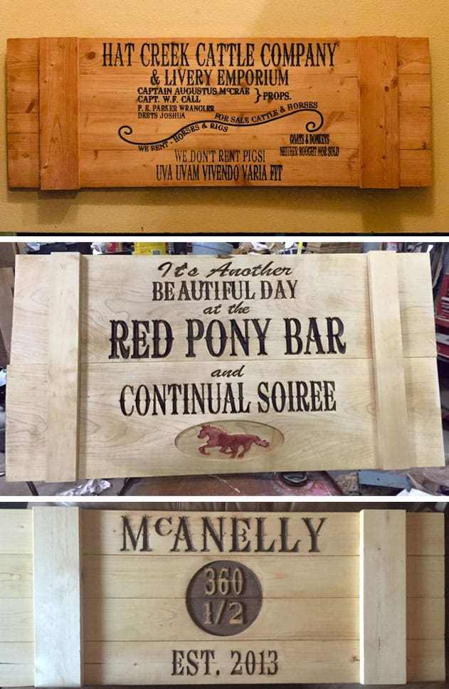 Larry says he doesn’t do fancy projects, but when looking at his work, you can see a completeness in concept that isn’t ordinary. When Larry takes on a project, he really takes it all the way. Like the Ranch and the wedding carvings, he uses multiple pieces to create an overall theme that, to me, makes it fancy. Even when he makes signs, he goes a little bit further to give them a uniqueness that sets his work apart. He dreams to one day build and perform with his own CarveWright made guitar. We look forward to seeing that.