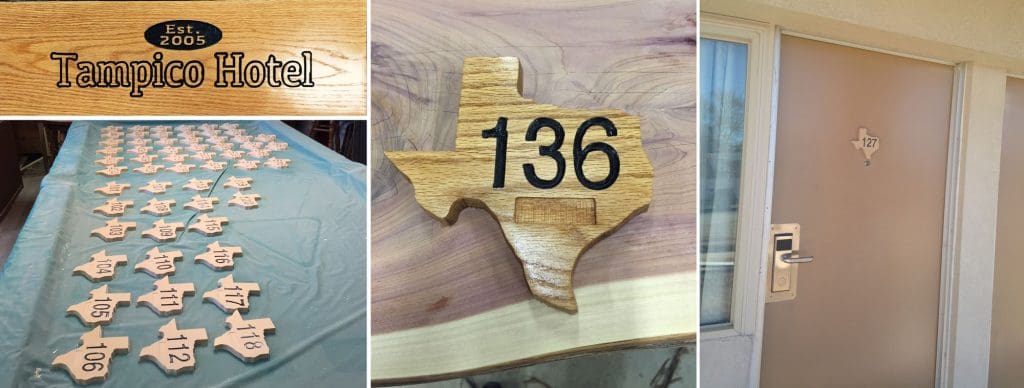 His biggest project included 200 Texas-shaped & numbered room door signs for a motel out in West Texas.