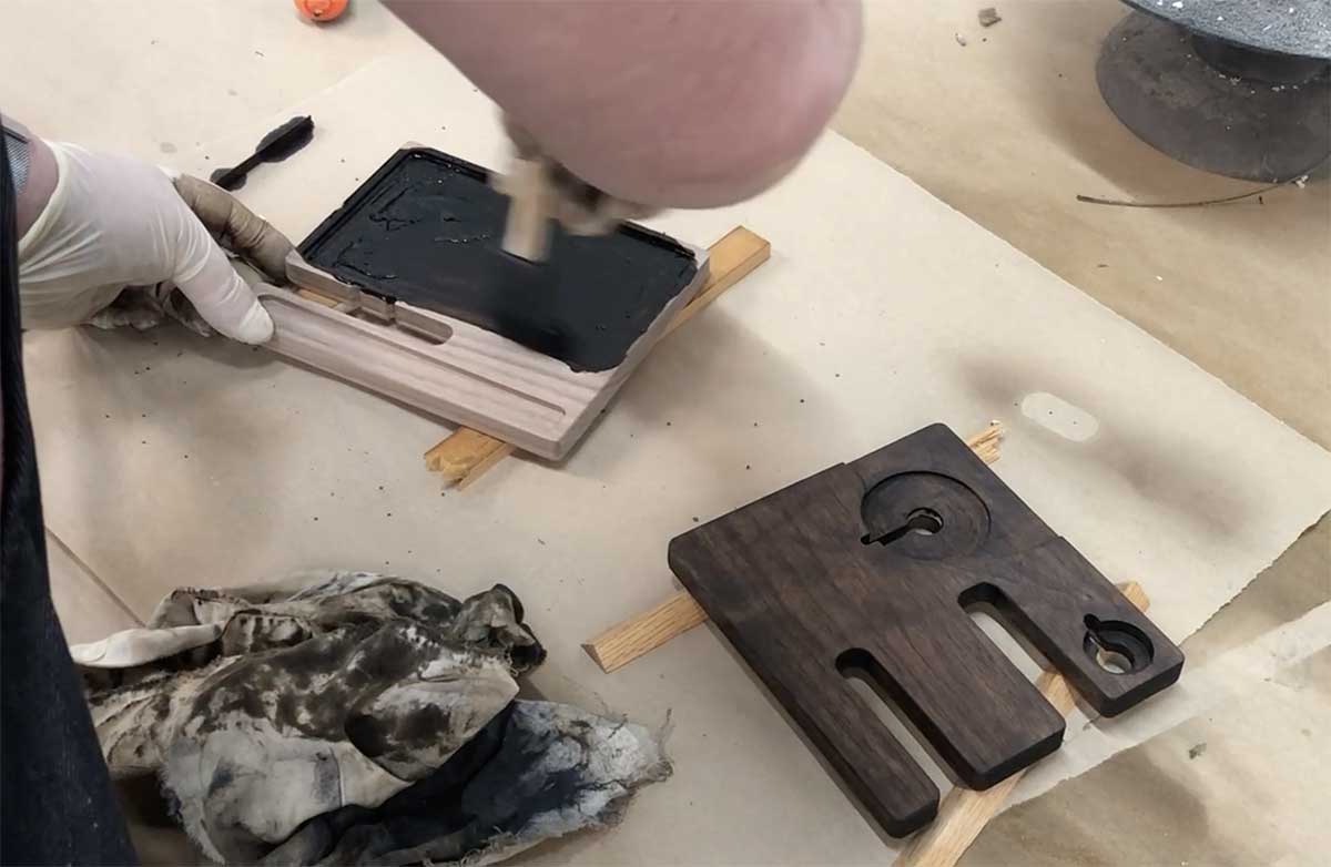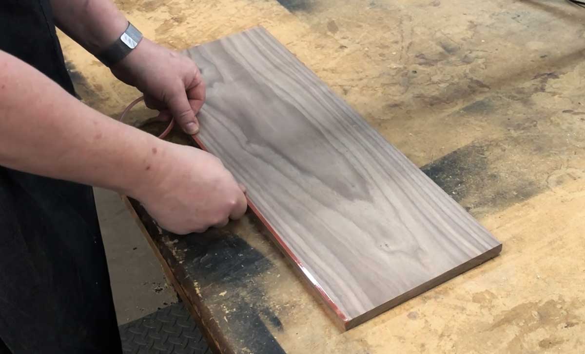 I wanted the finished pieces carved on half inch thick hardwoods, but I ran tests on scrap plywood to make certain my measurements and bit setup worked. I just applied the accutrack tape and belt to the boards and loaded them straight into the RAVEN.