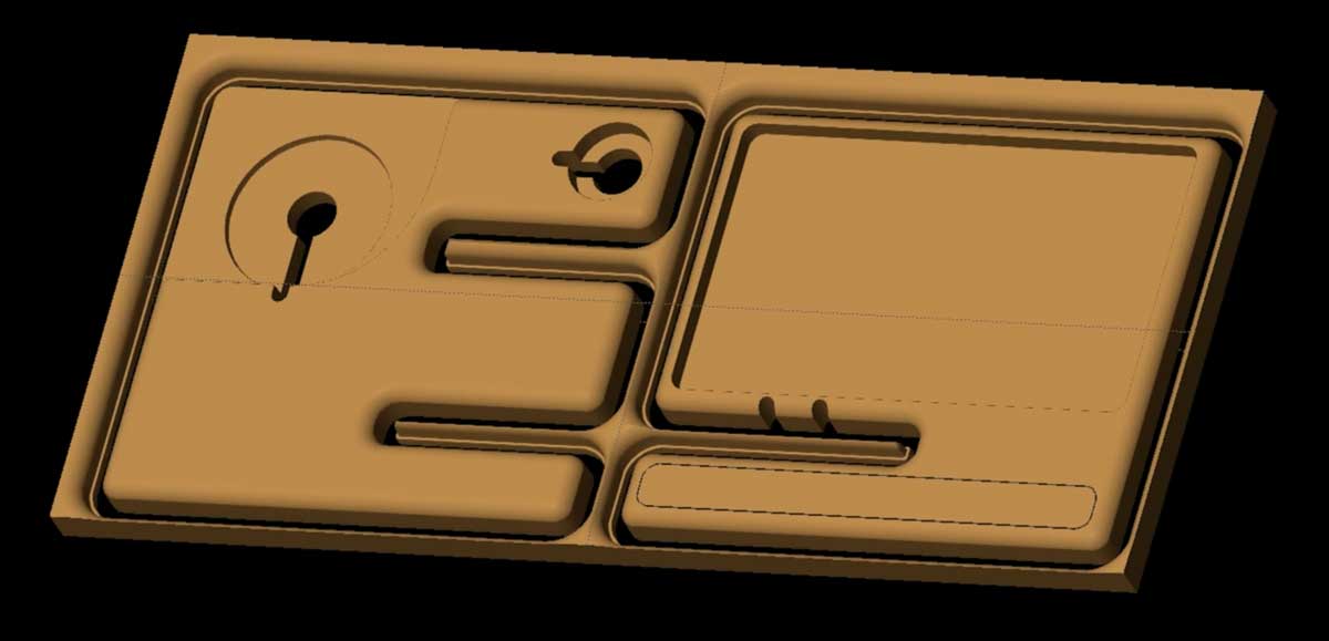 Here I assigned bits to rout the pockets and cut it out. I experimented with versions that included a roundover on all the edges and different shapes for a clearance pocket for the phone’s camera bezel.