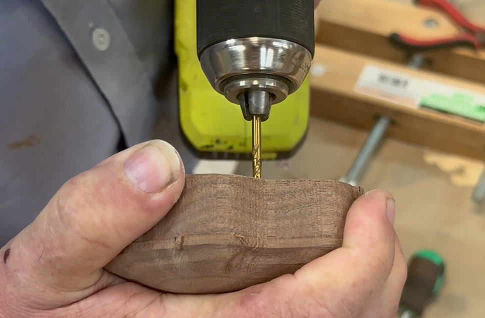 Use the middle section to keep the hing hole in the top square. Be careful not to drill through the lid.