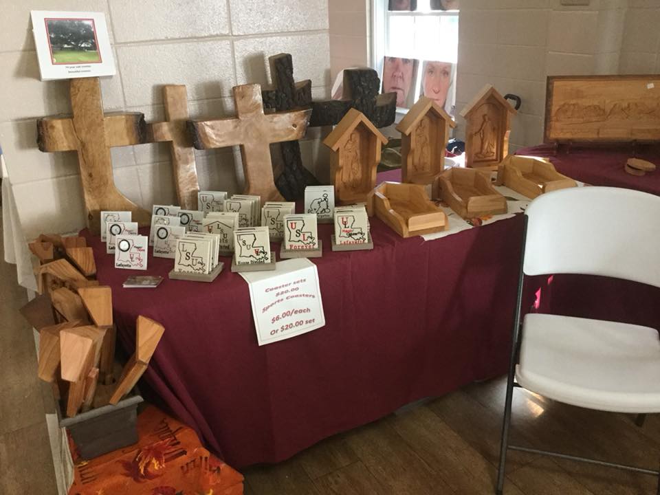 A second machine was added in 2010, when he needed to complete a set of the 14 Stations of the Cross for a Christmas gift. Today, his full woodworking shop is there just to support his CarveWright machines. He sometimes has both running 8 hours a day for 5 or 6 days a week to keep up his inventory for the craft shows which he has participated in for the last 11 years.