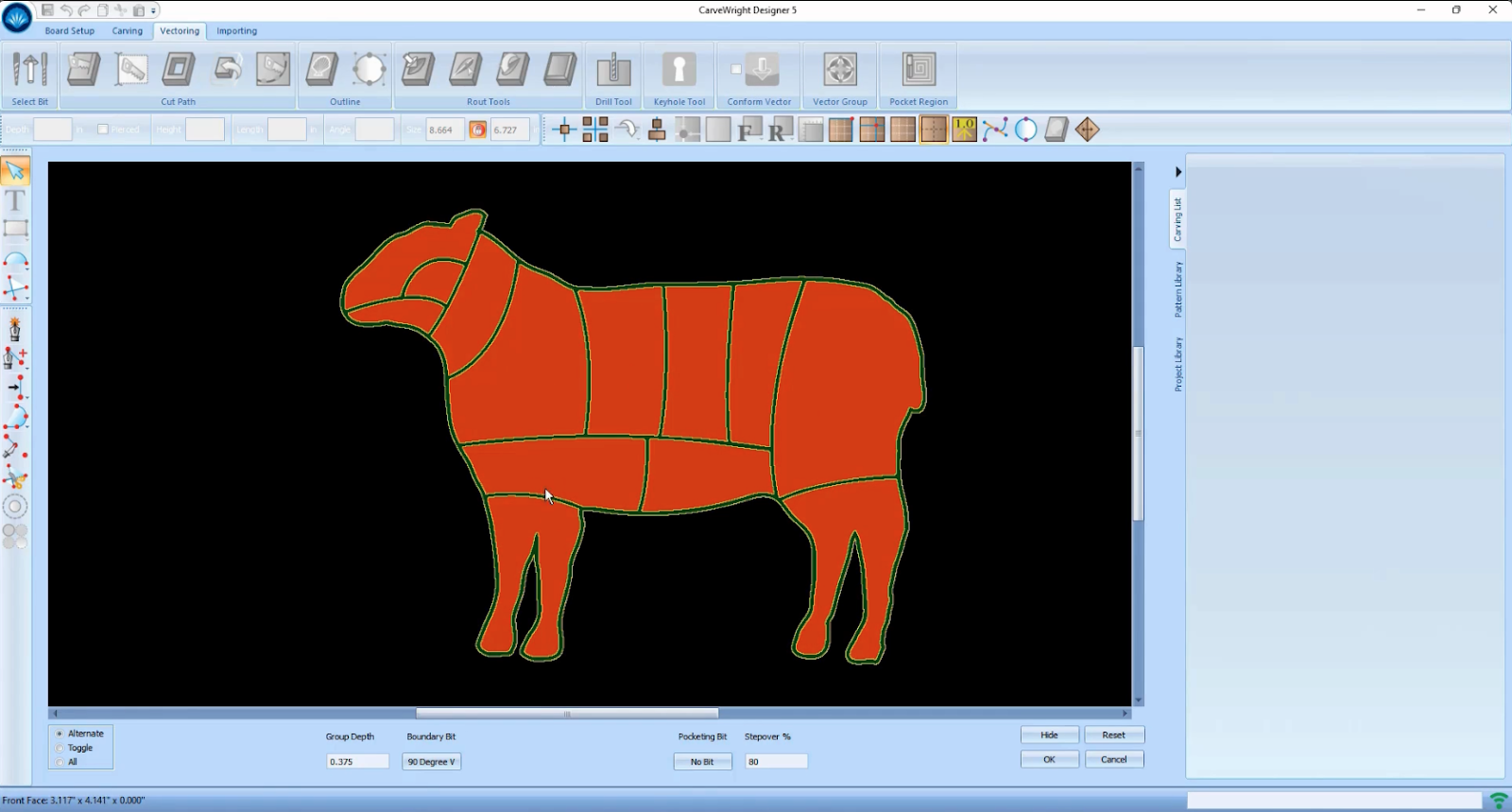 • 60 degree V bit will be used so thicker inlay material will require larger radiuses.