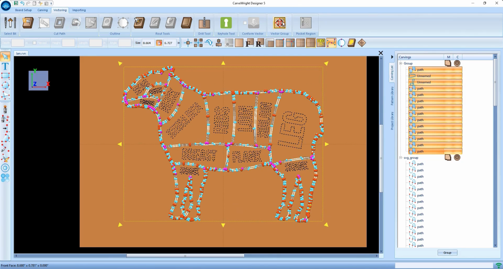 • Position the paths to fit on the inlay material board.  Take care not to modify the paths in any way.