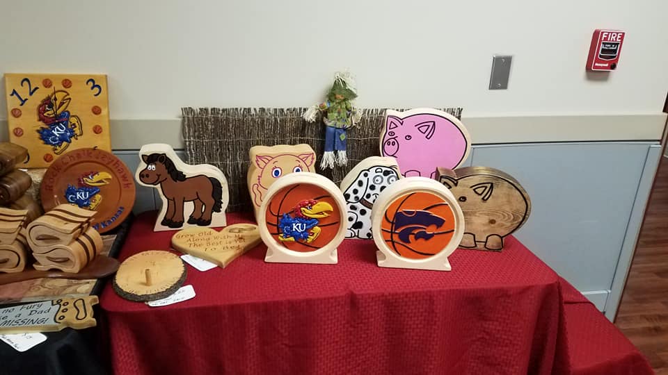 Coin banks, onsie baby birth announcement plaques and cremation urns were added to his repertoire in 2017, but his dream came true in 2018 when he built his new woodworking shop. “I sacrificed a third of my back yard and built a 24×45 building, complete with full HVAC system, dust collection and electrical under the floor to the middle island for the table saw and jointer.” Darren sells his products online at www.kansaswood.com and www.kansaswood.etsy.com.