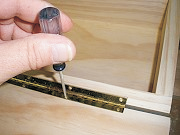 When dry, remove the clamps. Select your hinges. You can use a single piano hinge or two ‘regular’ hinges. I used a 8″ x ¾” piano hinge. Position the hinge on the box edge and outline it with a pencil.