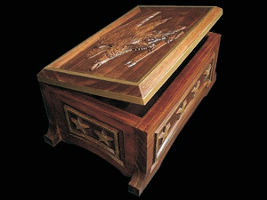 This project features a Colonial-style eagle relief carving on the lid and five-point star accents on the box sides to enhance the overall patriotic theme. The project requires no special bits and the main components are carved and cut out with just the two standard bits that came with your machine.