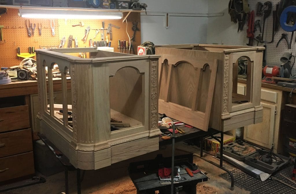 There were over 50 different carving and cutout files to make this desk. Many of those were test pieces cut to make sure the pieces looked and fit correctly. This was a lot of machine time, but it went remarkably fast. The carving portion of these projects always ends up being the fastest and easiest part of the job.